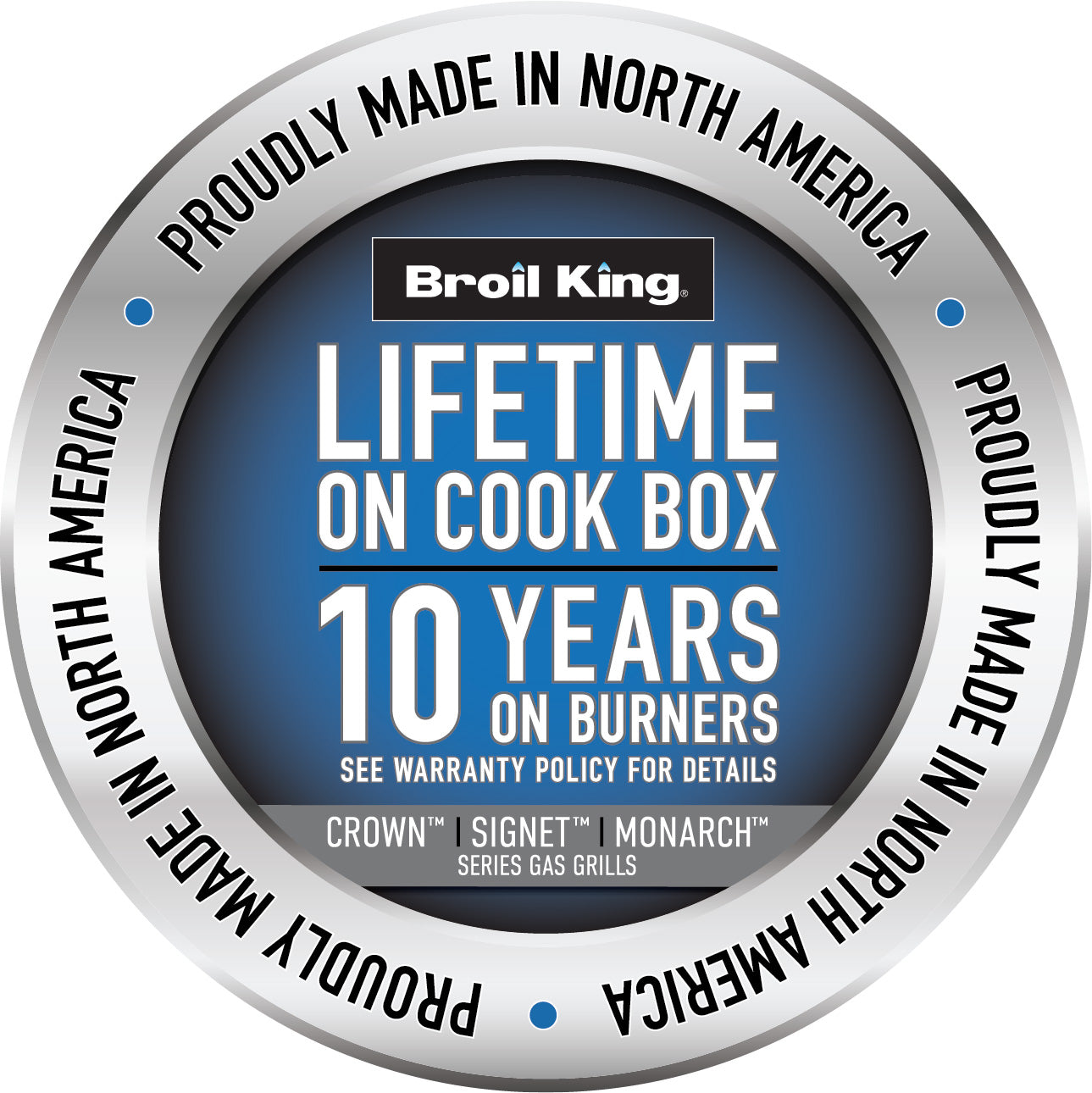 Som alle Broil King-gassgriller er Crown™ 490 stolt produsert i Nord-Amerika med materialer av høy kvalitet for lang levetid og pålitelig ytelse.