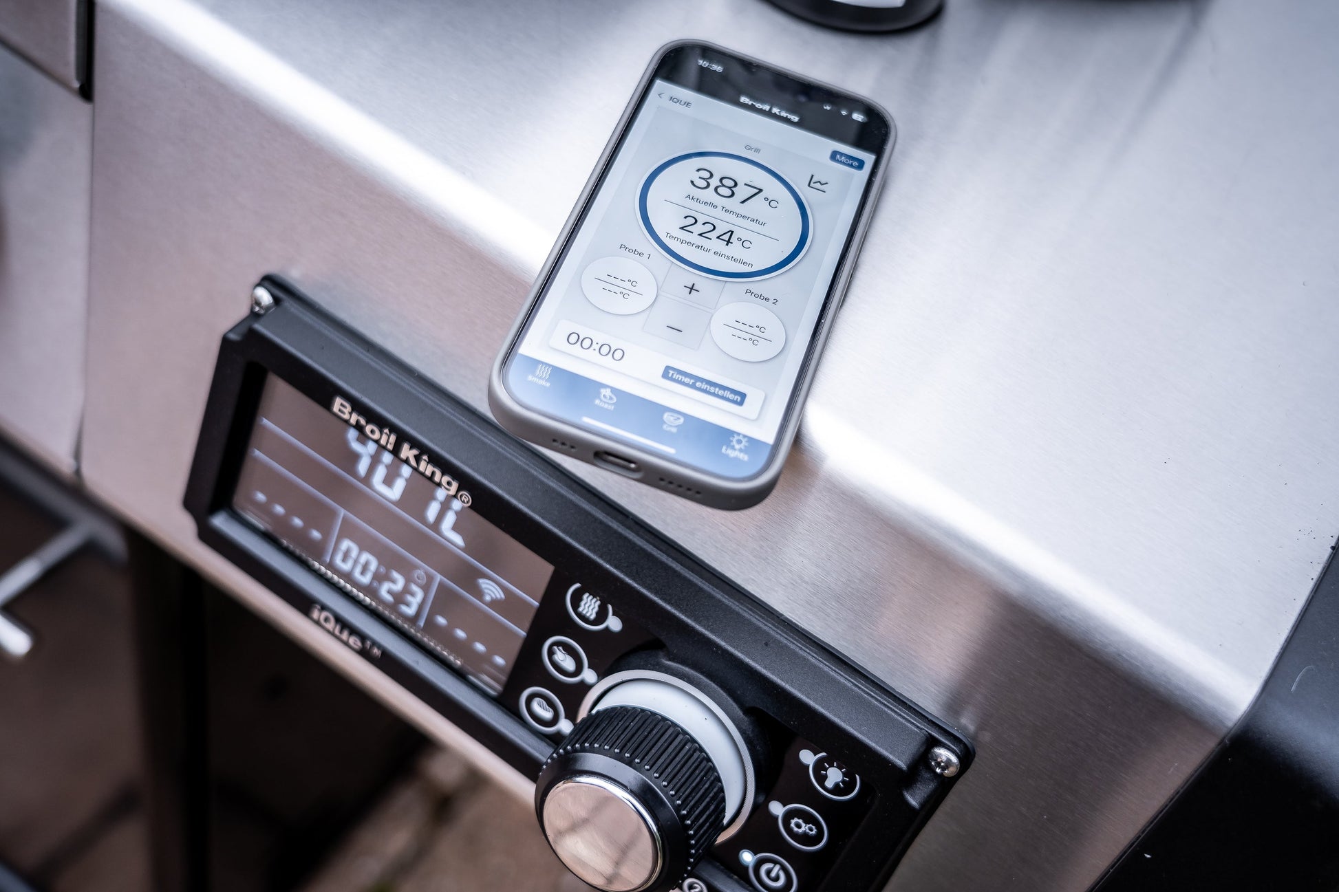 Med iQue™-teknologi får du en helt ny nivå av temperaturkontroll. Velg mellom å røyke, grille eller ovnsgrille med et enkelt knappetrykk. Grillen justerer automatisk varmen og holder en jevn temperatur gjennom hele grillingen – selv ved værendringer. Kontrollér og tilpass grilltemperaturen direkte via iQue™-appen fra din mobil eller nettbrett (tilgjengelig for både iOS og Android).