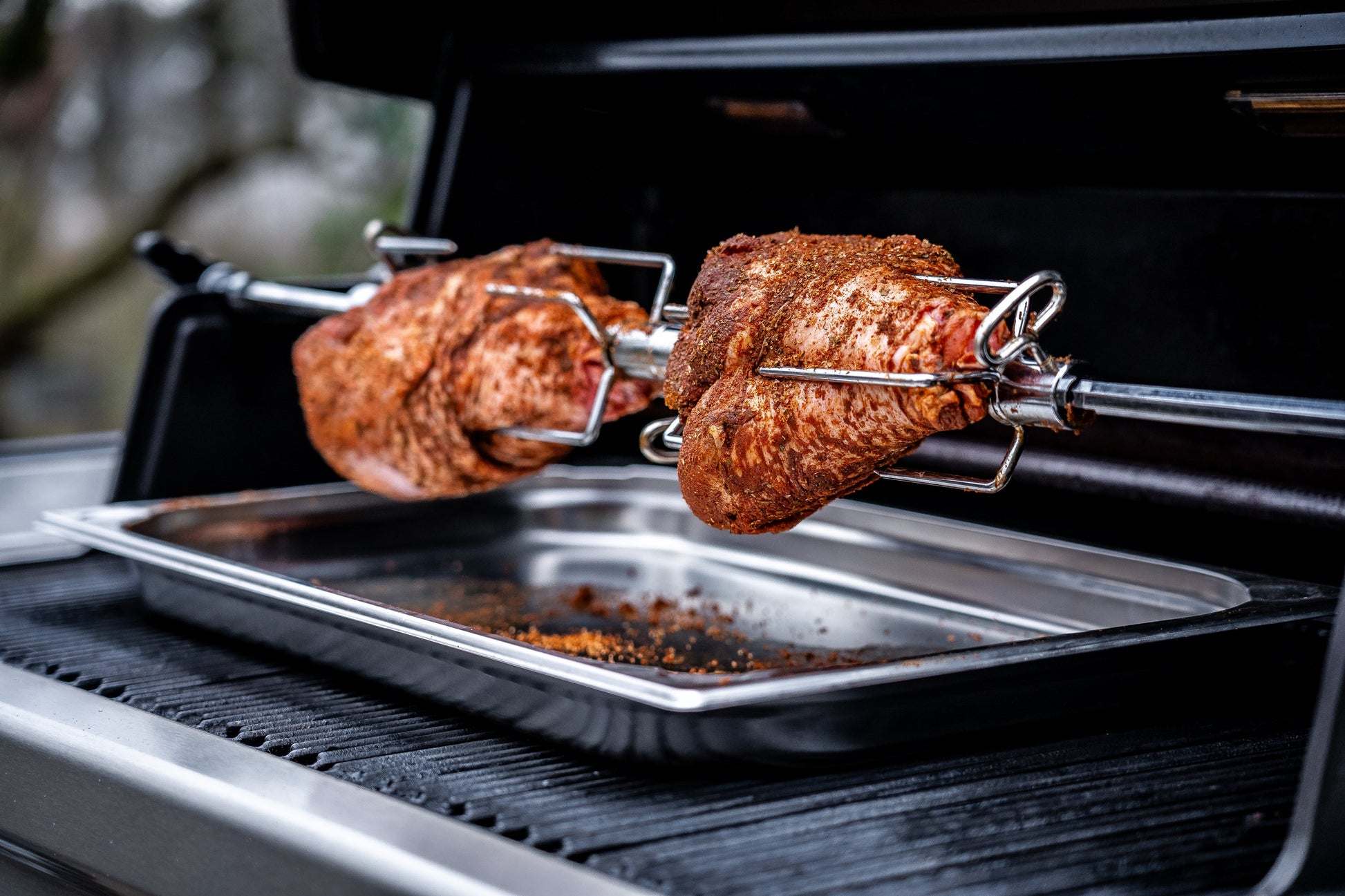 iQue™-teknologi gjør det mulig å enkelt styre temperaturen med presisjon, uavhengig av hva som står på menyen. Kombiner dette med den infrarøde sidebrenneren på 2,9 kW og det kraftige rustfrie grillristet for å skape den perfekte stekeskorpen. Rotisseribrenneren på 4,4 kW, sammen med premium rotisserisettet, gir deg muligheten til å tilberede kylling, kjøtt eller grønnsaker sakte til perfeksjon – saftig, mørt og fullt av smak.